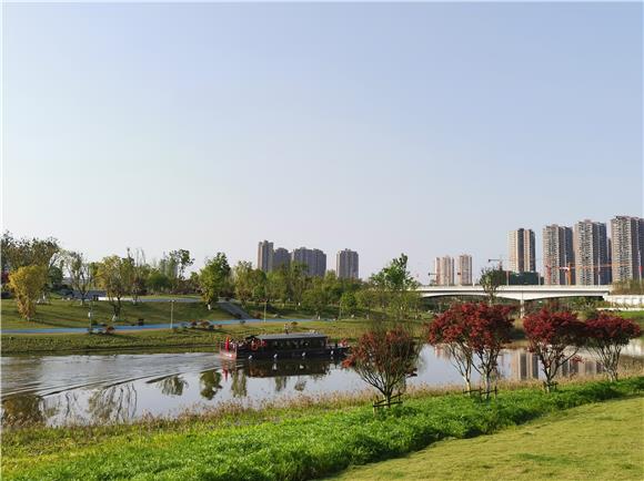 5月8日上午,銅梁區(qū)淮遠河原鄉(xiāng)中央公園段,游客乘坐觀光船在河面上游覽。銅梁區(qū)淮遠河上的游船。通訊員 陳剛 攝“河面很干凈,水質(zhì)很清澈