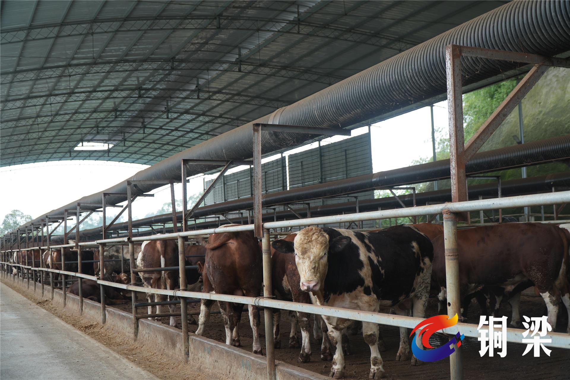 日前,在位于銅梁區虎峰鎮前進村的重慶善濃農業有限公司養牛基地,一排排整齊的牛棚映入眼簾,棚內一頭頭肉牛膘肥體壯,工人正忙著攪拌草料
