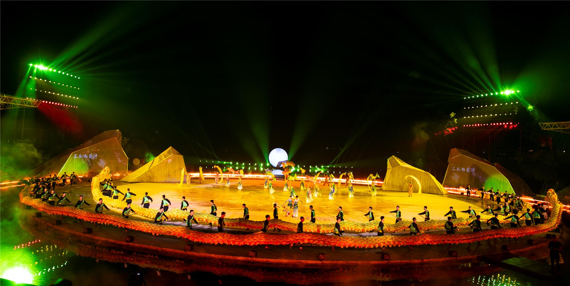 每到周末,銅梁玄天湖龍舞廣場,大型非遺山水實景劇《追夢·銅梁龍》都會在這里準時上演,吸引眾多游客一探銅梁龍舞的獨特魅力。《追夢·銅
