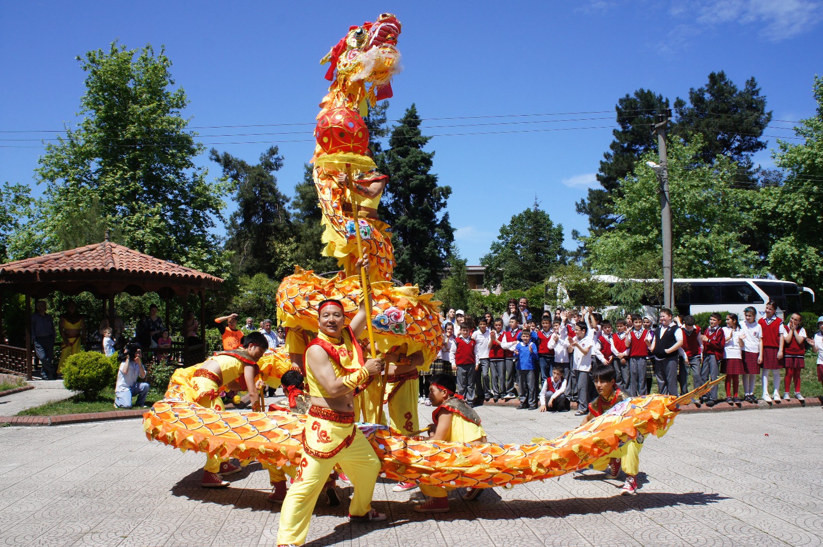 銅梁龍在世博會英國館前表演