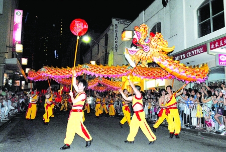 銅梁火龍參加新加坡盛裝游行表演